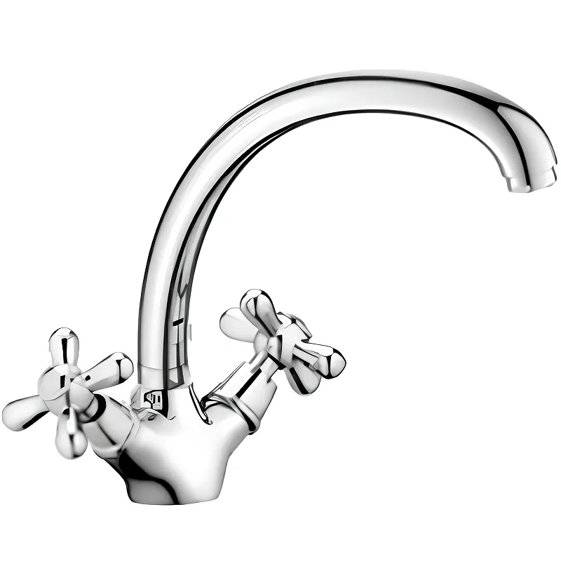 Двухвентильный смеситель для кухни Viko V-2043.Характеристики: Цвет: хром. Материал: силумин. Механизм: керамическая кран-букса. Управление: вентильное. Излив: поворотный. Стандарт подводки: G 1/2. Тип подводки: гибкая. Тип крепления: шпилька. Монтаж: на мойку. В комплекте поставки: смеситель для кухни.