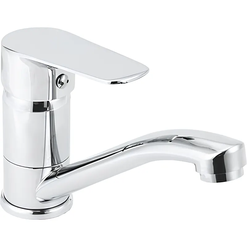 Смеситель для кухни Viko V-4110.Характеристики: Цвет: хром. Материал: латунь. Керамический картридж 35 мм. Управление: однорычажное. Поворотный излив. Монтаж: на мойку. Стандарт подводки: G 1/2. Тип подводки: гибкая. Крепление: латунная гайка. В комплекте поставки: Смеситель. Гибкая подводка. Крепление.