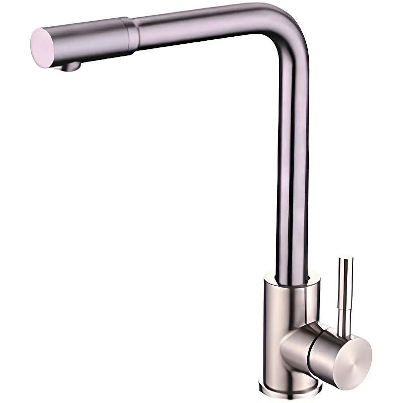 Смеситель для кухни Viko V-4454.Характеристики: Цвет: сатин. Материал: нержавеющая сталь. Керамический картридж. Управление: однорычажное. Поворотный излив. Монтаж: на мойку. Поворотный аэратор на 360 градусов. Стандарт подводки: G 1/2. Тип подводки: гибкая. Крепление: гайка из нержавеющей стали. В комплекте поставки: Смеситель. Гибкая подводка. Крепление.