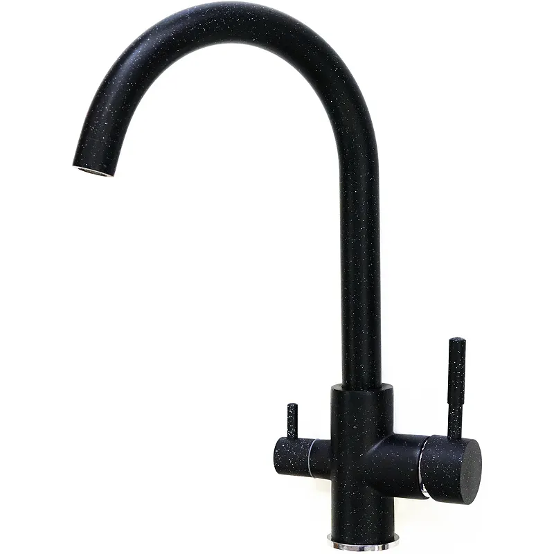 Смеситель для кухни Viko V-5124 с краном для питьевой воды.Характеристики: Цвет: черный мрамор. Материал: латунь. Механизм: керамический картридж. Управление: однорычажное. Излив: поворотный, с каналом для питьевой воды. Стандарт подводки: G 1/2. Монтаж: на мойку. Тип подводки: гибкая. Тип крепления: латунная гайка. В комплекте поставки: Смеситель. Гибкая подводка. Крепление.