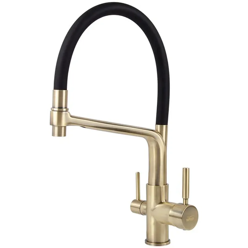 - Современный дизайн: Смеситель выполнен в стильном бронзово-черном цвете, что добавляет элегантности вашей кухне.