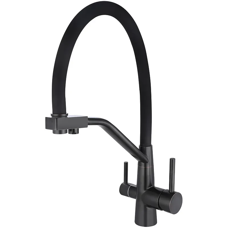 - Современный дизайн: Смеситель для кухни отличается стильным черным матовым покрытием, идеально подходящим для любой современной кухни.