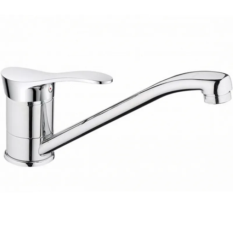 Однорычажный смеситель для кухни Viko V-6003.Характеристики: Цвет: хром. Материал: силумин. Механизм: керамический картридж. Управление: рычажное. Излив: поворотный. Стандарт подводки: G 1/2. Тип подводки: гибкая. Тип крепления: шпилька. Монтаж: на мойку. В комплекте поставки: смеситель для кухни.