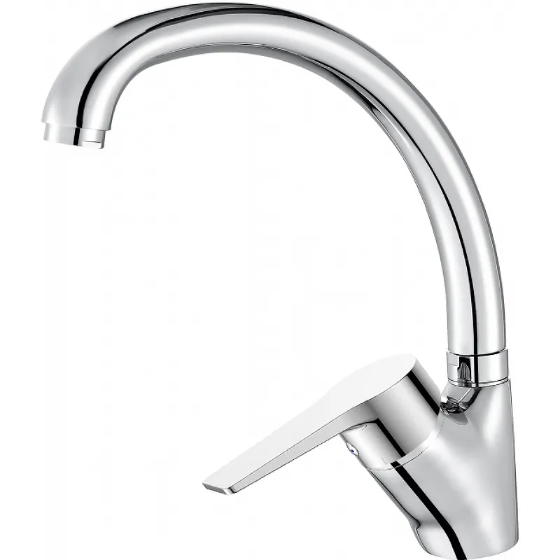 Однорычажный смеситель для кухни Viko V-6704.Характеристики: Цвет: хром. Материал: силумин. Механизм: керамический картридж. Управление: рычажное. Излив: поворотный. Стандарт подводки: G 1/2. Тип подводки: гибкая. Тип крепления: шпилька. Монтаж: на мойку. В комплекте поставки: смеситель для кухни.
