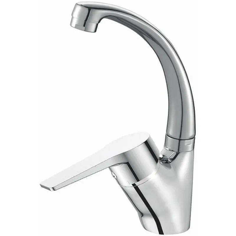 Смеситель для кухни Viko V-6731.Характеристики: Цвет: хром. Материал: латунь. Керамический картридж. Управление: однорычажное. Поворотный излив. Гибкая подводка. Аэратор. Стандарт подводки: G 1/2. Монтаж: на мойку. Крепление: шпилька. В комплекте поставки: Смеситель. Гибкая подводка. Крепление.