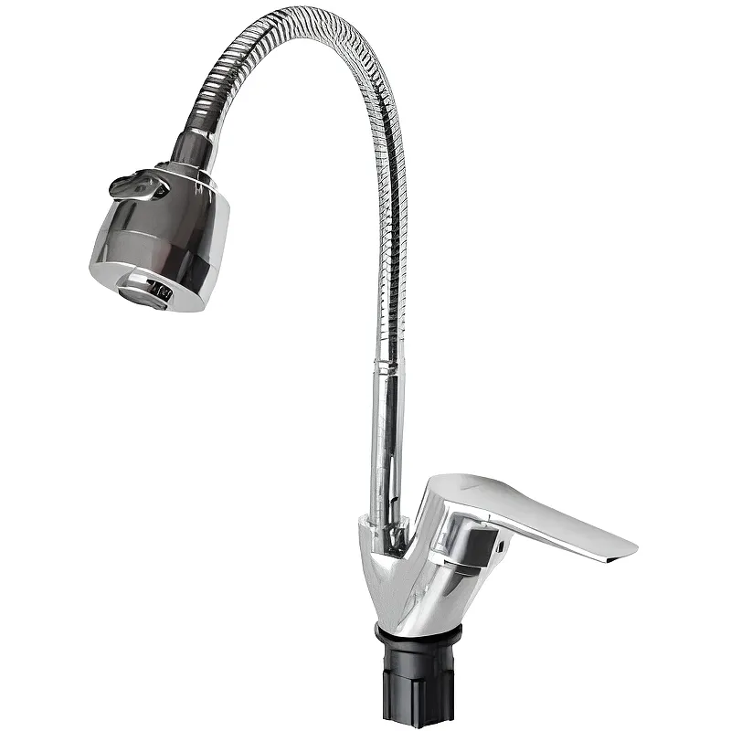 Смеситель для кухни Viko V-6734 с гибким изливом.Характеристики: Цвет: хром. Материал: латунь. Керамический картридж. Управление: однорычажное. Поворотный гибкий излив. Монтаж: на мойку. Стандарт подводки: G 1/2. Тип подводки: гибкая. Тип крепления: латунная гайка. Аэратор двухрежимный. В комплекте поставки: Смеситель. Гибкая подводка. Крепление.