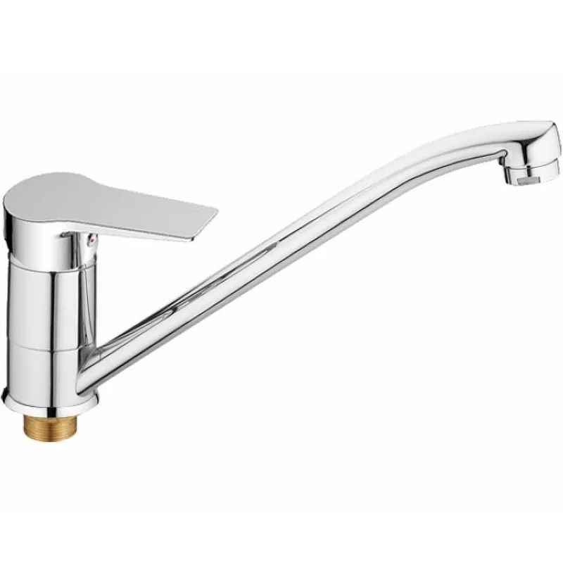 Однорычажный смеситель для кухни Viko V-7113.Характеристики: Цвет: хром. Материал: латунь. Механизм: керамический картридж. Управление: рычажное. Излив: поворотный. Стандарт подводки: G 1/2. Тип подводки: гибкая. Тип крепления: гайка латунная. Монтаж: на мойку. В комплекте поставки: смеситель для кухни.