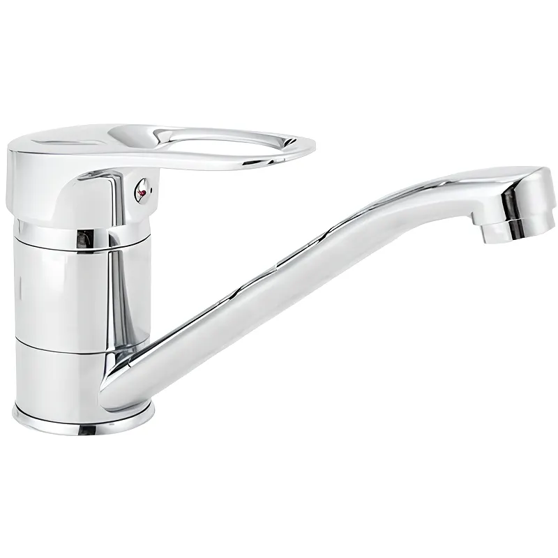 Смеситель для кухни Viko V-7611.Характеристики: Цвет: хром. Материал: латунь. Керамический картридж. Управление: однорычажное. Поворотный излив. Монтаж: на мойку. Стандарт подводки: G 1/2. Тип подводки: гибкая. Крепление: шпилька. В комплекте поставки: Смеситель. Гибкая подводка. Крепление.
