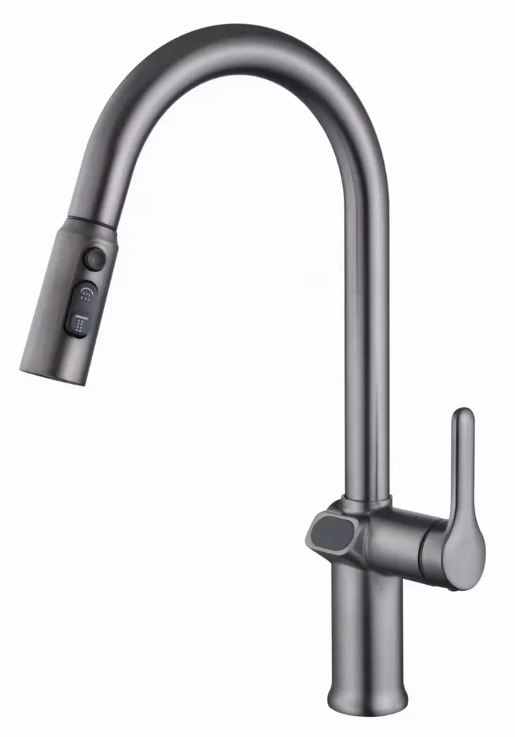 Смеситель для кухни вытяжной с дисплеем Gun Metal, арт. K15GMLED
