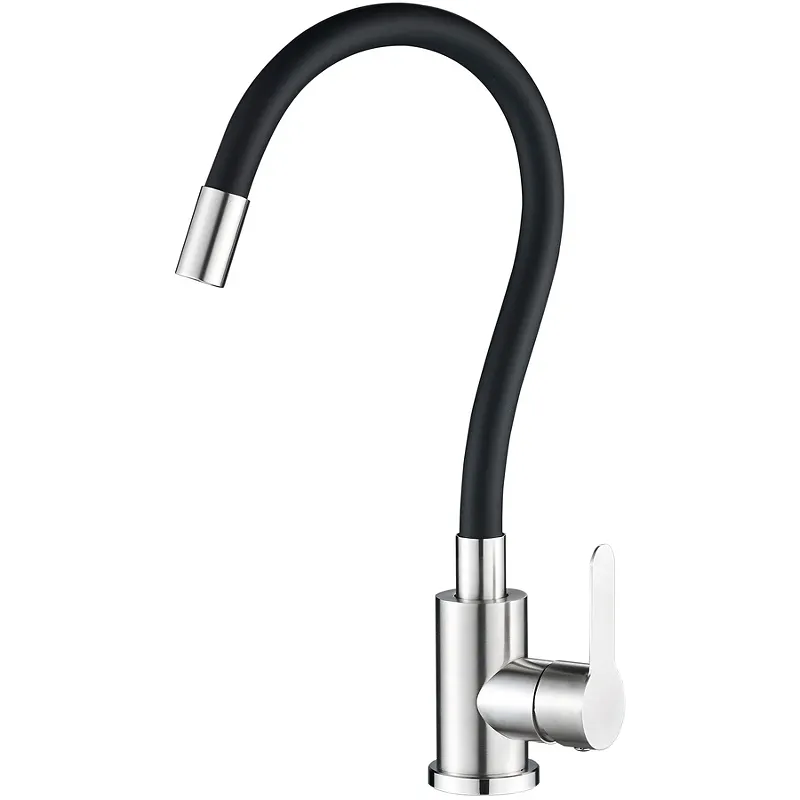 Смеситель для кухни WesnaArt Eko EKO05-140.Характеристики: Цвет корпуса: сатин. Цвет излива: черный. Материал: нержавеющая сталь SUS304. Управление: однорычажное. Механизм: керамический картридж 35 мм c противошумной вставкой. Излив: поворотный, гибкий. ЭКО аэратор 9 л/мин. Система против известковых отложений. Функция экономии расхода воды. Тип подводки: гибкая EPDM в оплетке из нержавеющей стали 500 мм. Стандарт подводки: 1/2. Отверстия для монтажа: 1. Монтаж: на мойку/на столешницу. В комплекте поставки: Смеситель. Гибкая подводка. Крепеж Easy Fix из нержавеющей стали.Пьедестал.