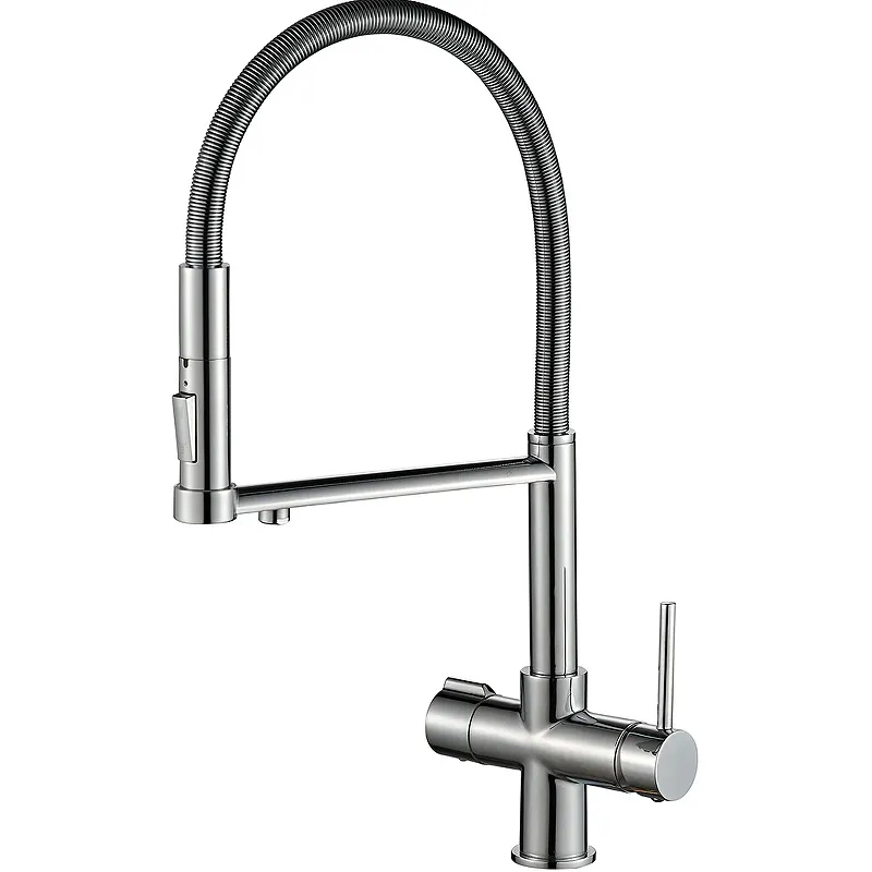 Смеситель для кухни ZorG Steel Hammer SH 2002 CR под фильтр.Характеристики: Материал: латунь. Цвет: хром. Механизм: керамический картридж, керамическая кран-букса для питьевой воды. Управление: рычажное. Стандарт подводки: 1/2. Универсальное цанговое подключение к фильтру. Поворотный излив. Функции: возможность присоединения фильтра для воды, совмещенный излив для фильтра. В комплекте поставки: Смеситель. Аэратор. Крепления. Гибкая подводка. Инструкция.
