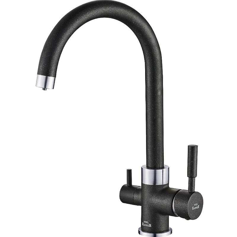 Смеситель для кухни ZorG Steel Hammer SH 713 BLACK CR — это стильный и функциональный выбор для вашей кухни. Выполненный из латуни с гранитным матовым покрытием, данный смеситель сочетает в себе современные технологии и элегантный дизайн. Однорычажное управление позволяет легко регулировать поток воды, а поворотный излив с каналом для питьевой воды обеспечивает максимальное удобство. Универсальное цанговое подключение к фильтру делает его незаменимым для современной кухни.