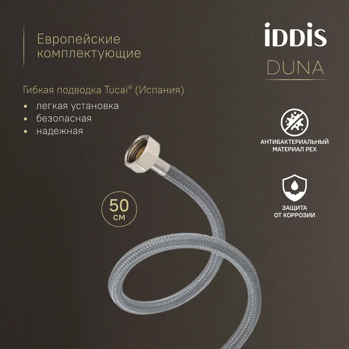 Смеситель для настольного умывальника Duna – воплощение актуальных трендов в дизайне смесителей в безупречном исполнении: фрезеровка, изысканная ручка-петля, модные цвета и фактуры. Ручка выполнена из латуни для сохранения чёткости линий фрезеровки. Европейские комплектующие и технологии — для премиального качества. — Скрытый аэратор Neoperl® (Швейцария) не нарушает дизайн, формирует ровный поток и снижает расход воды. Ключ для обслуживания в комплекте. — Керамический картридж с металлическим штоком Сitec® (Испания) обеспечивает долговечность, точность регулировки и плавный ход ручки. — Гибкая подводка Tucai® (Испания): безопасна для здоровья благодаря шлангу из нетоксичного материала PEX с антибактериальным эффектом, нейлоновая оплетка для защиты от коррозии и износа, увеличенная длина 50 см упрощает монтаж. Простая надёжная установка: металлическая гайка с тремя винтами — стабильность без люфта даже на неровной поверхности. Максимум тишины при работе: благодаря корпусу из нержавеющей стали работает практически бесшумно. Повышенная стойкость к бытовой химии и механическим повреждениям благодаря надёжному PVD-покрытию. Duna – там, где функциональность встречается с красотой. Гарантия на смесители IDDIS® – 10 лет. (с) Авторский текст, май 2025 г.