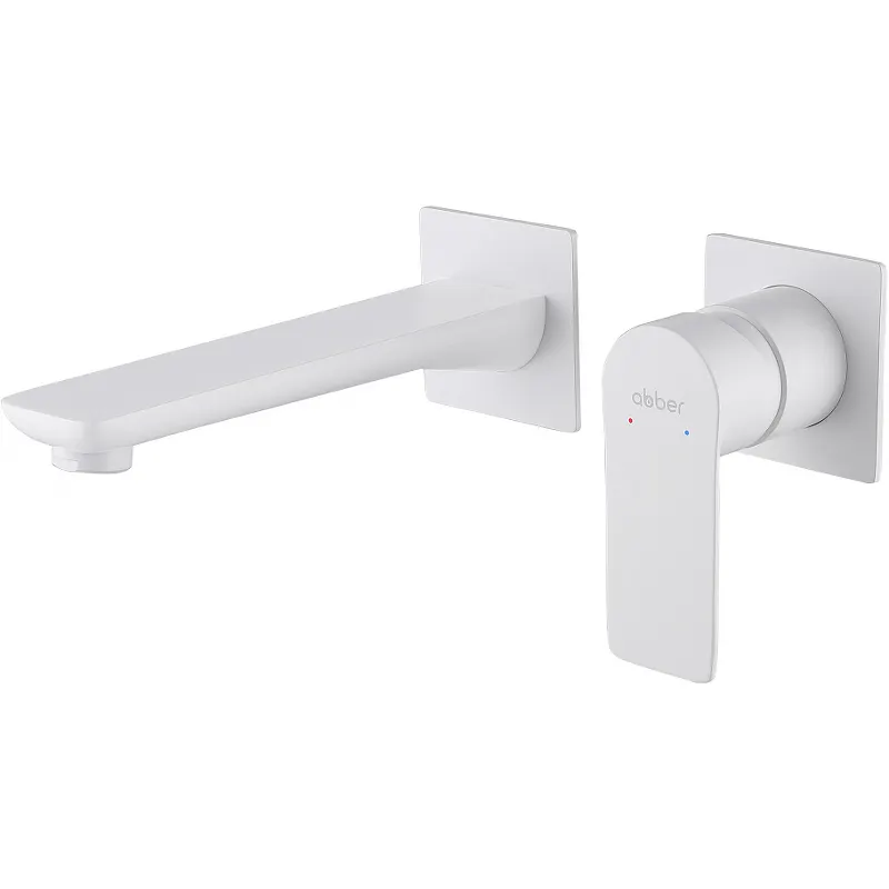 Смеситель для раковины Abber Weiss Insel AF8082FW.Характеристики: Цвет: белый матовый. Материал: латунь. Управление: однорычажный. Излив: фиксированный. Монтаж: встраиваемый, на 2 отверстия. В комплекте поставки: Смеситель для раковины (внешняя и внутренняя части). Излив.