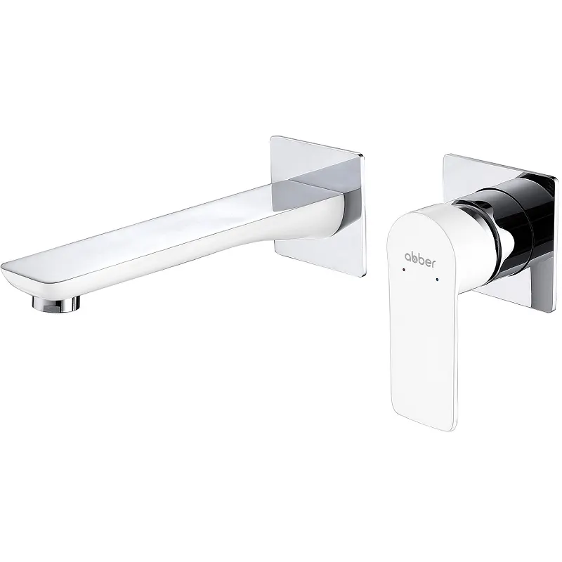Смеситель для раковины Abber Weiss Insel AF8082W.Характеристики: Цвет: белый, хром. Материал: латунь. Управление: однорычажный. Излив: фиксированный. Монтаж: встраиваемый, на 2 отверстия. В комплекте поставки: смеситель для раковины (внешняя и внутренняя части).