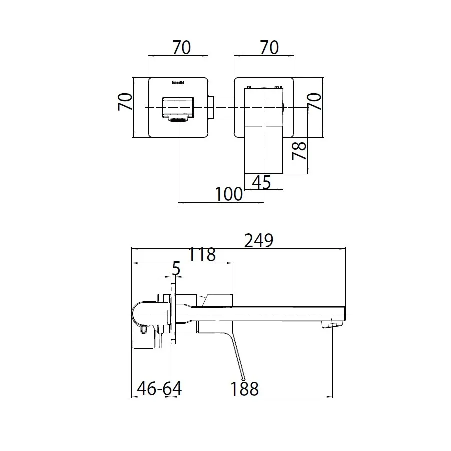 Смеситель для раковины Bossini Aki настенный встраиваемый со встраиваемой частью в комплекте цвет хром арт-Z00731.030+Z00801