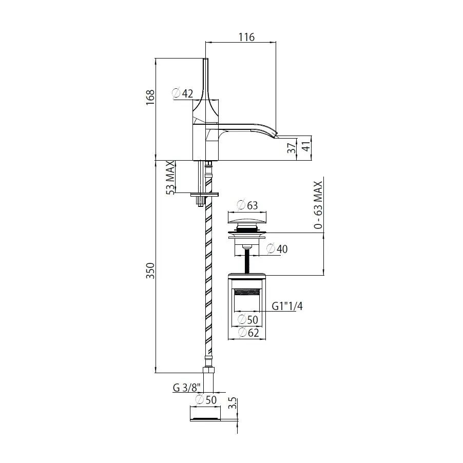 Смеситель для раковины Bossini Apice на 1 отверстие с донным клапаном цвет никель шлифованный арт-E89600.094