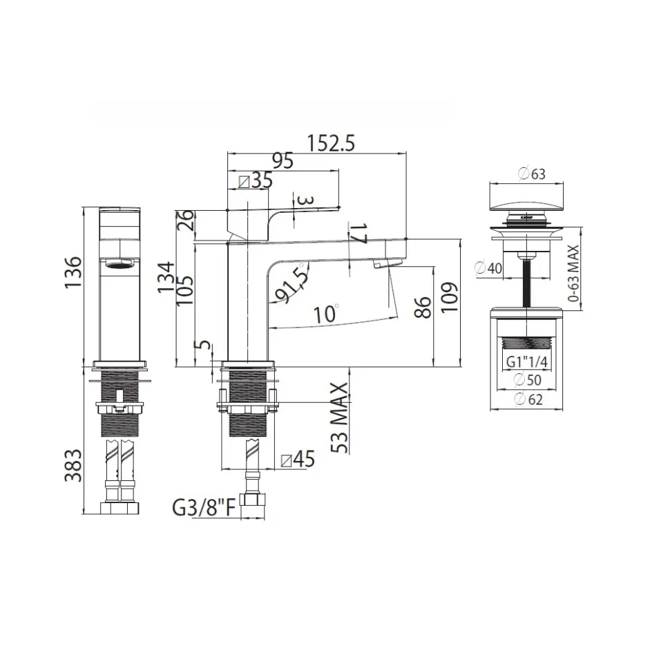 Смеситель для раковины Bossini Gillo на 1 отверстие с донным клапаном цвет никель шлифованный арт-Z00704.094