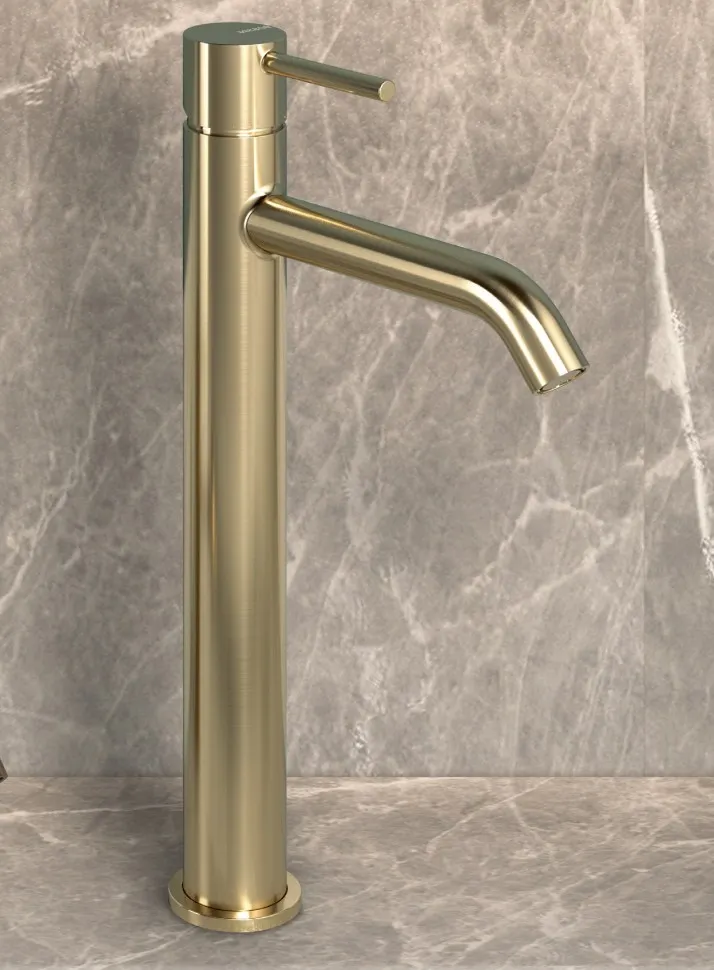 Смеситель для раковины Bossini Teo высокий с донным клапаном цвет золото сатинированное арт-Z00703.043