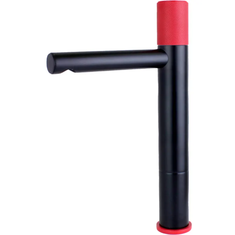 - Современный дизайн: Смеситель выполнен в стильном черно-красном цвете с матовой поверхностью, что придаёт интерьеру особую изысканность.