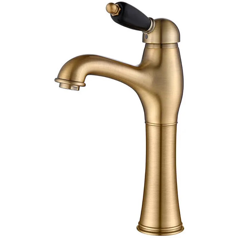 - Эстетичный дизайн: Матовая бронза и черная керамическая ручка придают смесителю элегантный вид, идеально подходящий для ванной в ретро-стиле.