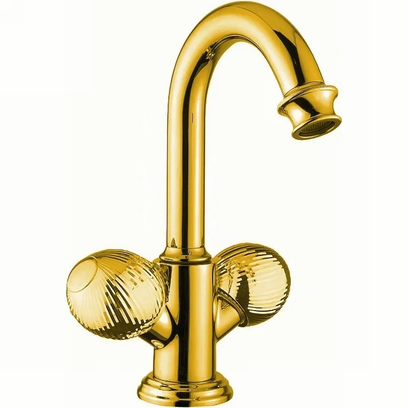 - Латунь в золотом покрытии: Смеситель для раковины из латуни с покрытием из золота 24 карат обеспечивает долговечность и стильный внешний вид.