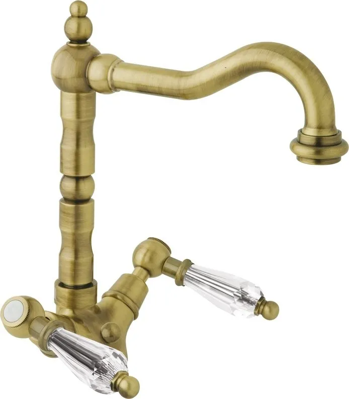 Смеситель для раковины Cezares Diamond LS2-02. Артикул: DIAMOND-LS2-02-Sw. Двухвентильный, монтируемый в одно отверстие, с донным клапаном, с аэратором. Смелое украшение в свете модных тенденций: сверкающие кристаллы Swarovski на каплевидных ручках дополнены утонченными классическими линиями корпуса смесителя. Этот образец безупречного мастерства несомненно создаст изысканный акцент в интерьере. Поверхность: бронза. Ручки: кристаллы Swarovski. Корпус: высококачественная латунь. Излив: поворотный, L 18 см. Механизм: керамические кран-буксы. Донный клапан: G 1 1/4. Управление донным клапаном: рычаг на корпусе смесителя. Подводка: гибкая, G 1/2. Рабочий интервал давления: 0,5-6 Атм. В комплекте поставки: смеситель, донный клапан, гибкая подводка, комплект креплений.