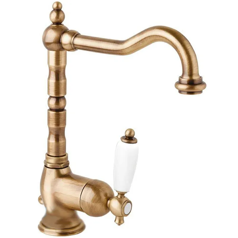 Смеситель для раковины Cezares Elite ELITE-LSM2-02-Bi.Характеристики: Цвет корпуса: бронза. Цвет ручки: белый. Материал: латунный сплав. Изящный рычаг позволяет точно регулировать температуру и напор воды. Фиксированный излив с аэратором. Удобный в обращении штоковый донный клапан G 1 1/4. Стандарт подключения: G 1/2. Монтаж: на 1 отверстие. Донный клапан: высота до 5 см, D 6,3 см. В комплекте поставки: смеситель, гибкая подводка, донный клапан.