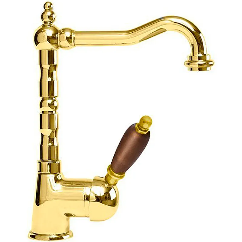 - Изготовлен из латуни с золотым покрытием 24 карат, что делает данный смеситель не только стильным, но и устойчивым к коррозии.