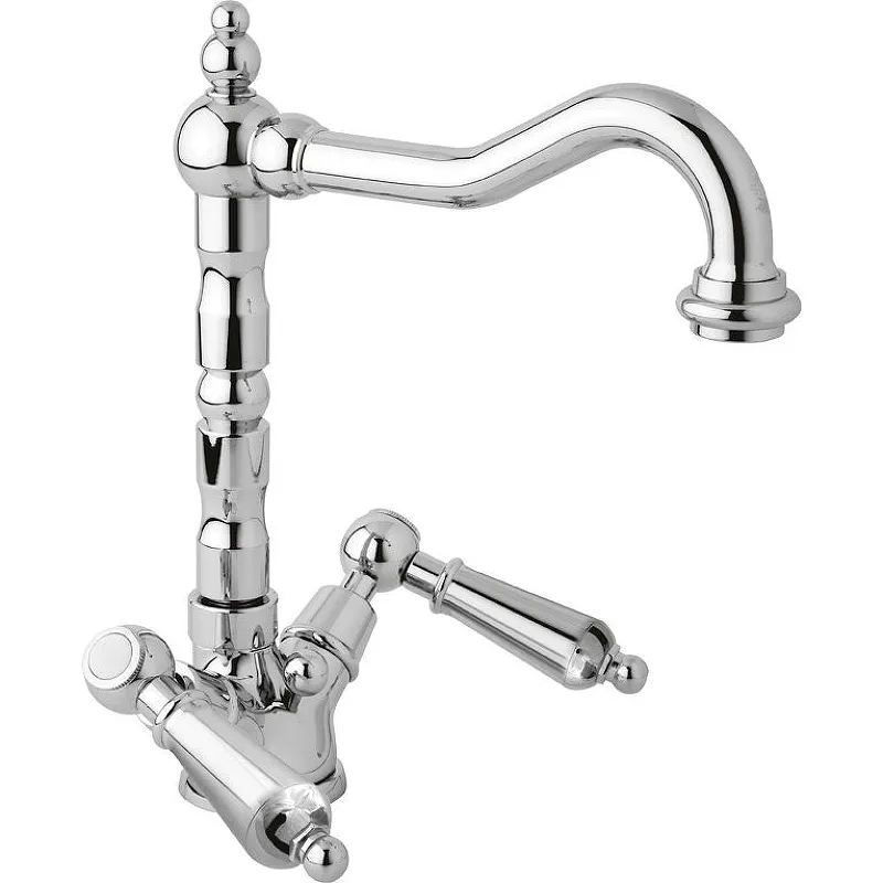 Смеситель для раковины Cezares First-LS2-01-M.Двухвентильный смеситель с поворотным изливом и аэратором, монтируемый в одно отверстие. Имеет долгий срок эксплуатации за счет качественных деталей, неприхотлив в уходе. Станет прекрасным дополнением ванной комнаты в классическом или ретро стиле.Характеристики: Цвет корпуса: хром. Цвет ручек: хром. Материал: латунь. Управление: вентильное. Механизм: керамическая кран-букса. Отверстия для монтажа: 1 отверстие. Рабочий интервал давления в водопроводной сети: 0,5-6 Атм. С аэратором. Тип подводки: гибкая. Стандарт подключения: G 1/2. В комплекте поставки: Смеситель. Донный клапан. Гибкая подводка. Крепления.