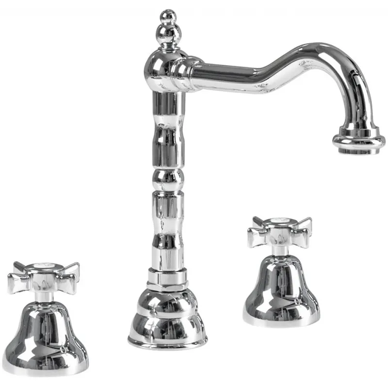 Смеситель для раковины Cezares Golf BLS2-01. Артикул: GOLF-BLS2-01. Поможет в создании изысканного классического или ретро стиля Вашей ванной комнаты. Цвет: хром. Материал: высококачественный латунный сплав, который обеспечивает прочность, устойчивость к влаге и температурным перепадам. Удобные крестообразные вентили позволяют точно регулировать температуру и напор воды. Керамические кран-буксы. Поворотный излив с аэратором. Удобный в обращении штоковый донный клапан G 1 1/4. Стандарт подключения: G 1/2. Монтаж: на 3 отверстия. В комплекте поставки: смеситель, гибкая подводка, донный клапан.