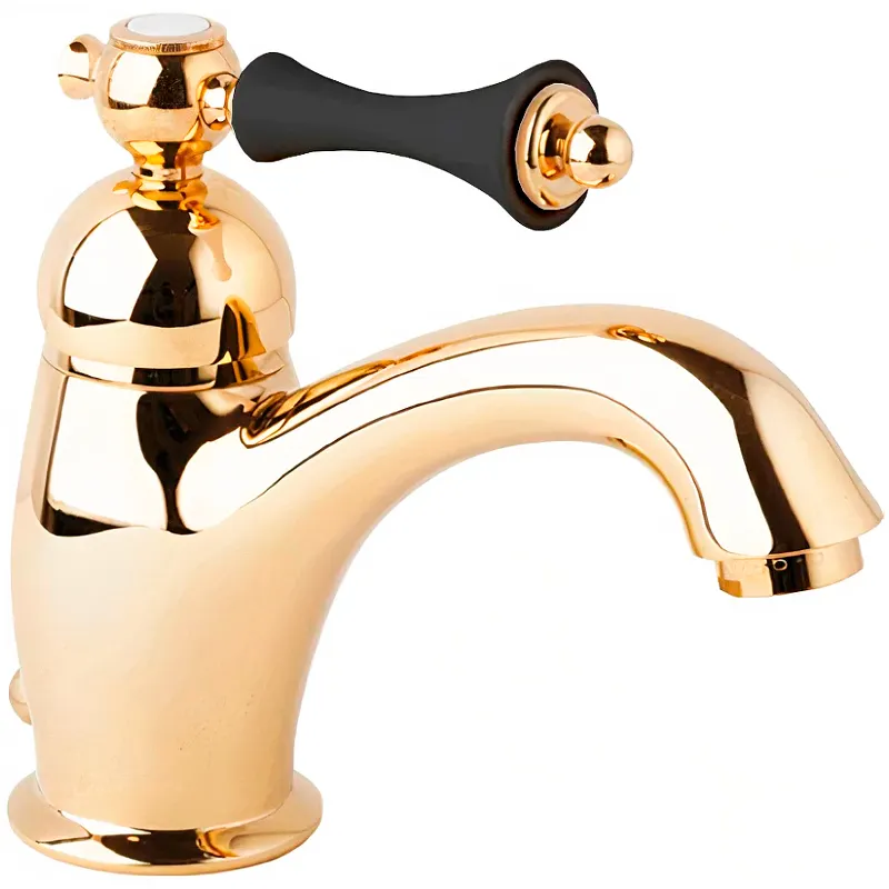 Смеситель для раковины Cezares Margot MARGOT-LSM1-03/24-N.Характеристики: Цвет: золото 24 карат. Цвет ручки: черный. Материал: латунь. Управление: однорычажное. Механизм: керамический картридж. Излив: фиксированный. Стандарт подводки: G 1/2. Тип подводки: гибкая. Аэратор. Рабочий интервал давления в водопроводной сети: 0.5-6.0 Атм. Монтаж: на раковину. В комплекте поставки: Смеситель для раковины. Гибкая подводка. Донный клапан.
