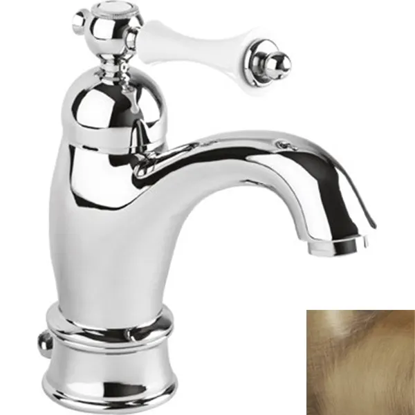 Смеситель для раковины Cezares Margot MARGOT-LSM1-A-02-Bi однорычажный, с аэратором, с донным клапаном, монтируемый в одно отверстие.Технические данные: Цвет: бронза. Цвет ручки: белый. Материал: латунь. Фиксированный излив: L 12,5 см. Механизм: керамический картридж. Донный клапан: G 1 1/4. Рычаг управления донным клапаном: на корпусе смесителя. Гибкая подводка: G 1/2. Рабочий интервал давления: 0,5-6 Атм. В комплекте поставки: смеситель; донный клапан; гибкая подводка; комплект креплений.