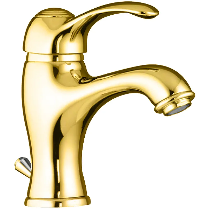 Смеситель для раковины Fiore Jafar 47OO5221 с однорычажным управлением идеально подходит для создания роскошного интерьера в ванной комнате. Уникальный дизайн в стиле ретро и глянцевое золотое покрытие делают его настоящим украшением любого санузла.