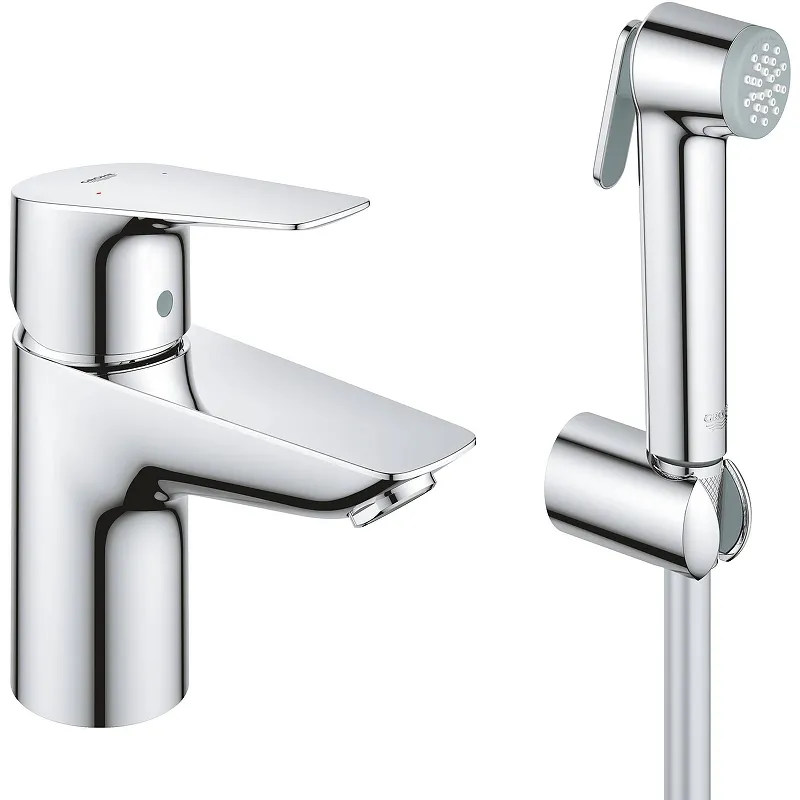 Смеситель для раковины Grohe BauEdge 23757001 с гигиеническим душем.Характеристики: Цвет: хром. Материал: латунь. Металлический рычаг. Технология Grohe Long-Life Finish: стойкое долговечное покрытие. Управление: однорычажное. Механизм: керамический картридж Long-Life 35 мм. Излив: фиксированный. Стандарт подводки: 3/8. Тип подводки: гибкая. Аэратор. Ограничитель температуры. Grohe Water Saving ограничитель расхода воды 5,7 л/мин. Длина душевого шланг: 1500 мм. Гигиенический душ со встроенным переключателем. Grohe FastFixation система быстрого монтажа. Монтаж: на раковину. В комплекте поставки: Смеситель для раковины. Гибкая подводка. Аэратор. Гигиенический душ. Душевой шланг. Настенный держатель для душа.