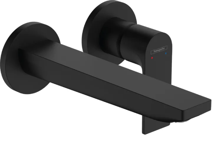 Смеситель для раковины, Hansgrohe, Rebris E, тип открывания воды-однорычажный, тип регулирования воды-керамический картридж, монтаж-настенный встраиваемый, отверстия для монтажа-2, вынос излива, мм-200, внутренняя часть-необходимо заказать, цвет-черный матовый арт-72568670