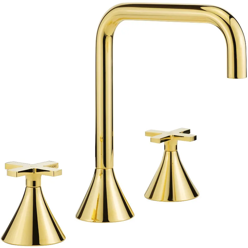 Смеситель для раковины Migliore Sirius 28162.Двухвентильный смеситель с поворотным изливом с аэратором.Характеристики: Цвет: золото. Материал: латунь. Тип излива: поворотный. Монтаж: на раковину, на столешницу. Отверстий для монтажа: 3. Стандарт подключения: G 1/2, гибкая подводка. Механизм: керамические кран-буксы. Совместим с проточным водонагревателем. Защита от обратного потока. В комплекте поставки: Смеситель с аэратором. Гибкая подводка. Крепление.