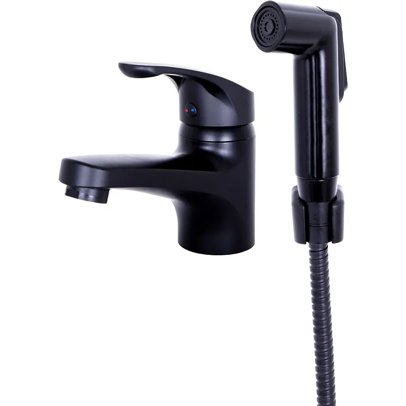 Смеситель для раковины Orange OneLife P01-022b с гигиеническим душем Черный матовый