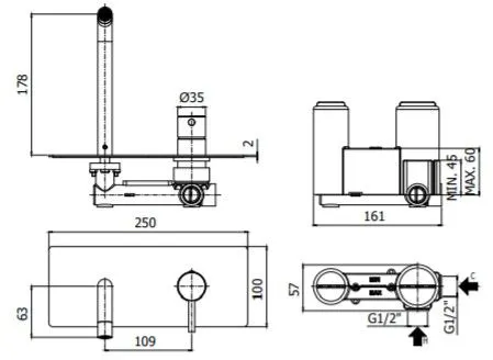 Смеситель для раковины Paffoni Light LIG105ST (с внутренней частью) сталь