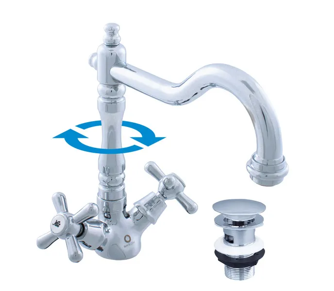 Rav Slezak Morava Retro MK121.5/8 смеситель для раковины. В комплектацию входит смеситель для раковины, кран буксы, аэратор, гибкая подводка. Донный клапан сlick-сlack.