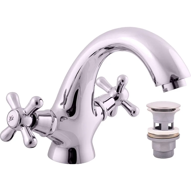 Смеситель для раковины Rav Slezak Morava retro MK129.5 с донным клапаном.Характеристики: Цвет: хром. Материал: латунь. Управление: двухвентильное. Механизм: керамическая кран-букса. Излив: фиксированный. Аэратор Neoperl. Стандарт подключения: G 1/2. Монтаж: на раковину. Отверстия для монтажа: 1. В комплекте поставки: Смеситель. Донный клапан click-clack. Гибкая подводка 35 см. Инструкция.