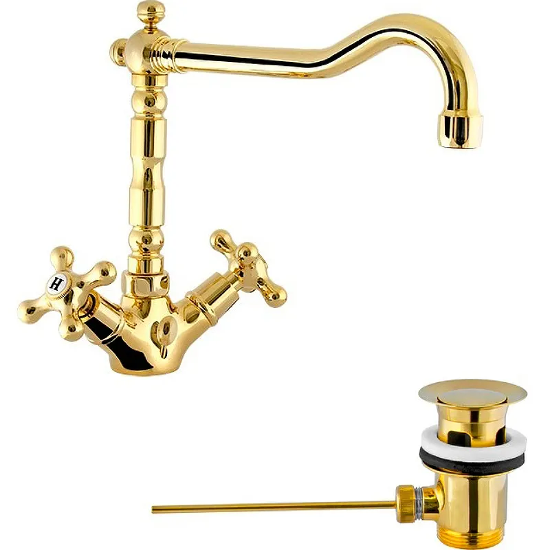 Смеситель для раковины Remer Liberty 13ALIDO с вентильным управлением станет стильным дополнением вашей ванной комнаты. Этот изысканный золотой смеситель выполнен из латуни и оснащён поворотным изливом, что обеспечивает удобство в использовании и долговечность.