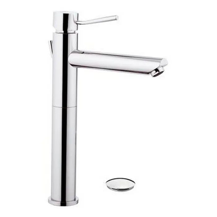- Практичные размеры: Высота смесителя — 34 см, излив средней длины — 18 см, что делает его подходящим для большинства раковин.