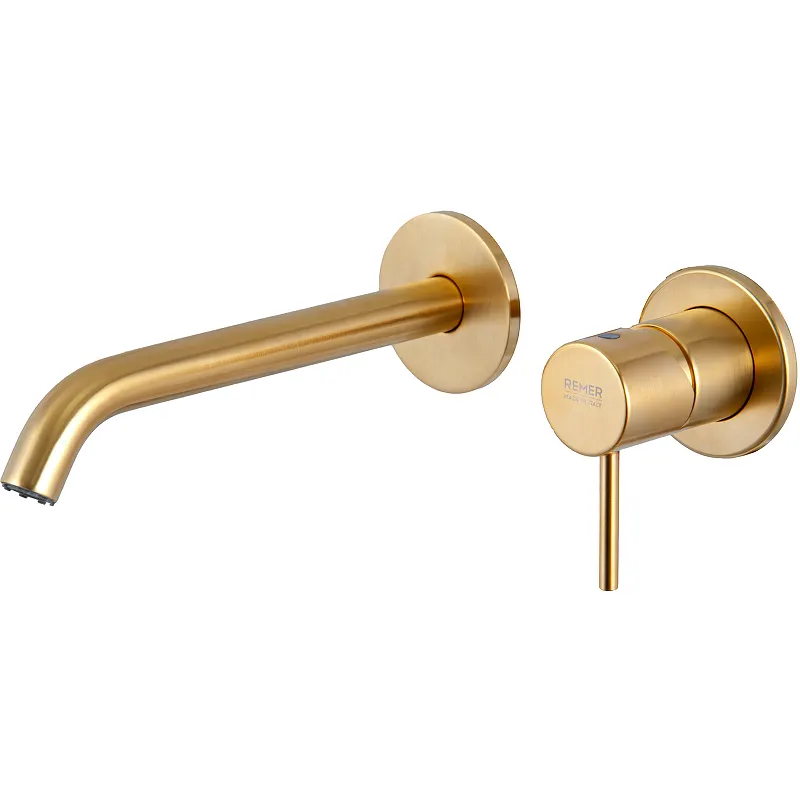 Изысканный смеситель для раковины Remer X-Style X15PLBG в цвете золото брашированное станет стильным акцентом в вашей ванной комнате. Этот однорычажный смеситель для умывальника из латуни идеально подходит для установки в дизайнерских интерьерах, добавляя элегантности и комфорта.
