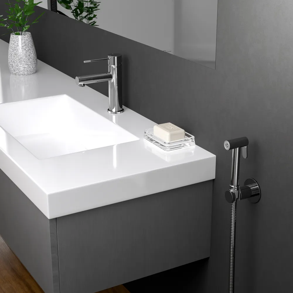 смеситель - 1 шт.гибкая подводка - 2 шт.набор креплений - 1 шт.лейка гигиеническая (метал.) - 1 шт.шланг душа 1,2 м - 1 шт.держатель лейки (латунный) - 1 шт.инструкция - 1 шт.