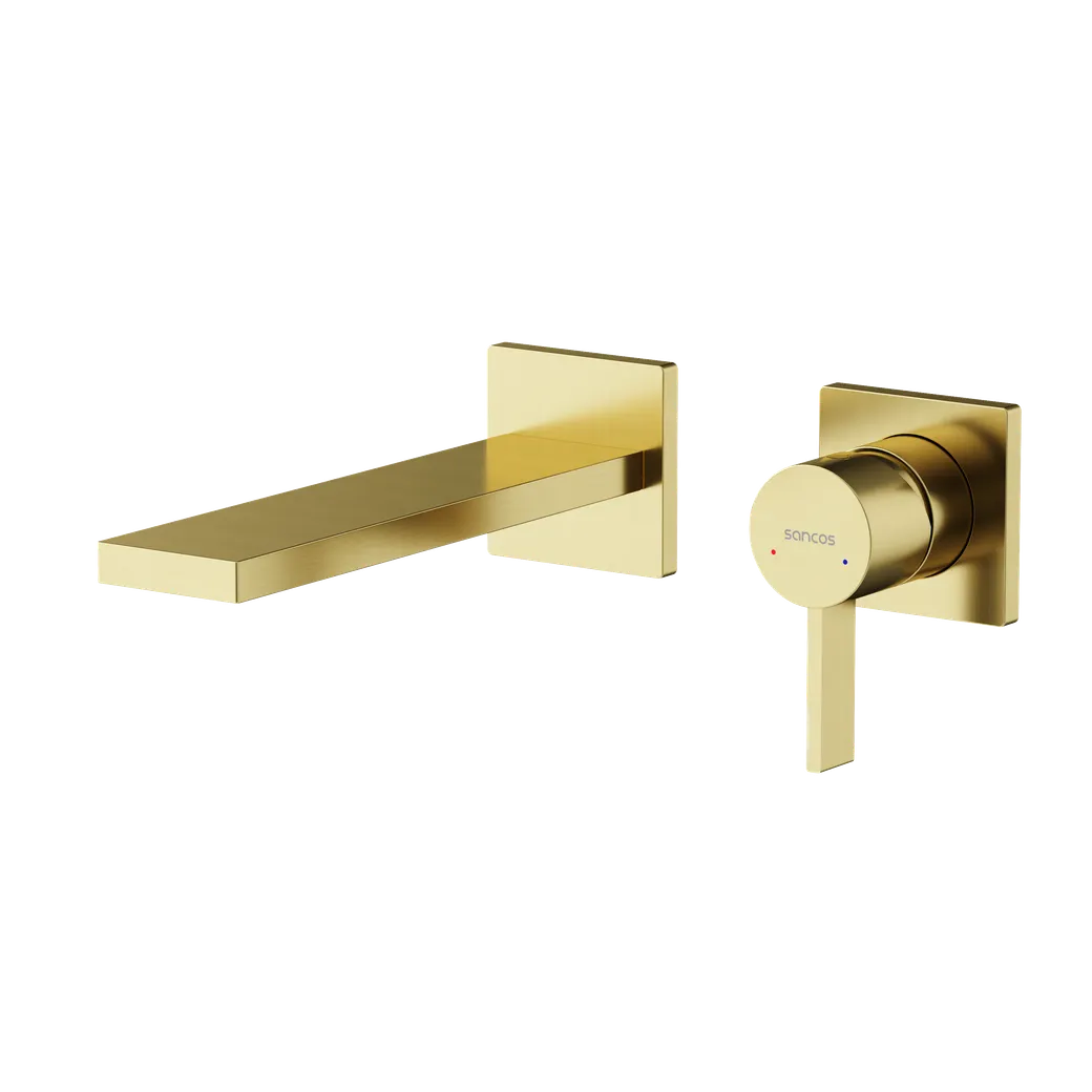 Смеситель для раковины SANCOS Linn c внутренней частью, брашированное золото, PVD покрытие, арт. SC9021BG