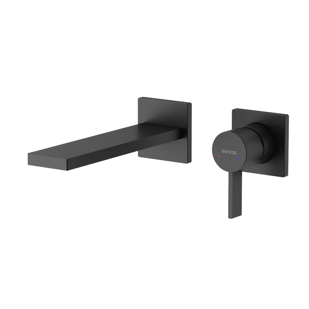 Смеситель для раковины SANCOS Linn c внутренней частью, черный матовый, арт. арт-SC9021MB