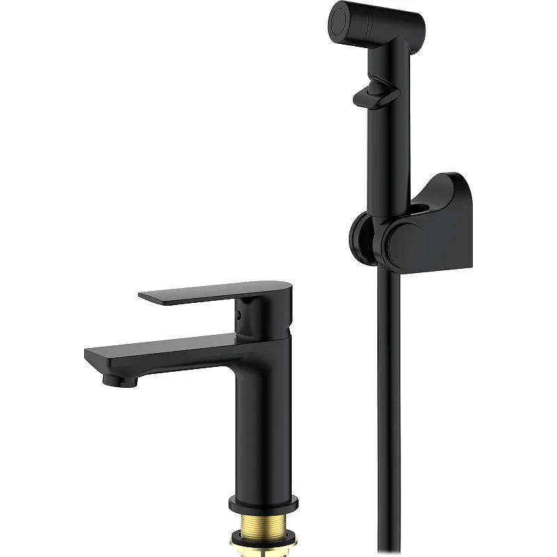 Смеситель для раковины Splenka S05.12.06 с гигиеническим душем Черный матовый