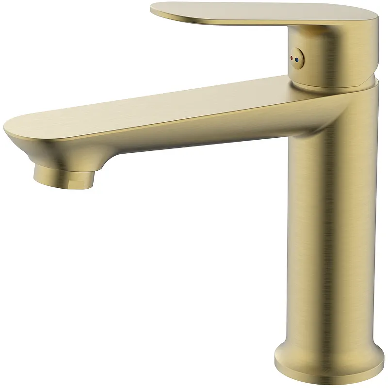 Смеситель для раковины Splenka S41.10.03.Характеристики: Цвет: золото матовое. Материал: латунь. Управление: однорычажное. Механизм: керамический картридж. Излив: фиксированный. Аэратор. Стандарт подводки: G 1/2. Тип подводки: гибкая. Отверстия для монтажа: 1. Монтаж: на раковину. В комплекте поставки: Смеситель для раковины. Гибкая подводка. Комплект креплений.