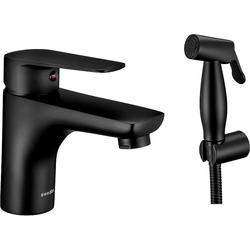 Смеситель для раковины Swedbe Mars 1760B с гигиеническим душем — идеальный выбор для современных ванных комнат. Черный матовый дизайн подчеркнет стиль и функциональность, обеспечивая удобство в использовании благодаря однорычажному управлению.